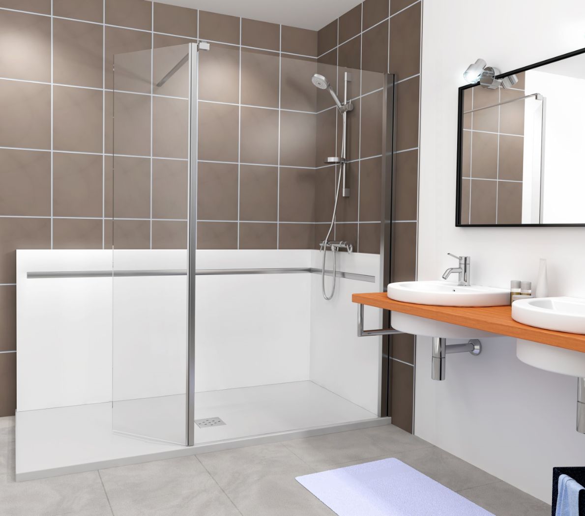 - Des parois de verre sécurisantes. Toutes ces combinaisons de parois assurent une ouverture assez large pour faciliter l’entrée et la sortie de douche, sans porte. Suffisamment vaste, l’espace douche comprend, à côté de la zone humide, une zone sèche pour s’essuyer confortablement. Cette solution sur-mesure est accessible pour les personnes en perte de mobilité ou les seniors.